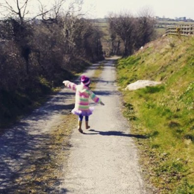 Mini-Me can point out some of the tree types (reminding me of things that I used to know!) and there’s a gate at the end of our farm where I once told her the fairy kingdom begins, so she loves to visit there. She stands on the side of the road talking to the gate, but in her head, she’s on a serious adventure! Fun fun fun and FREE FREE FREE!