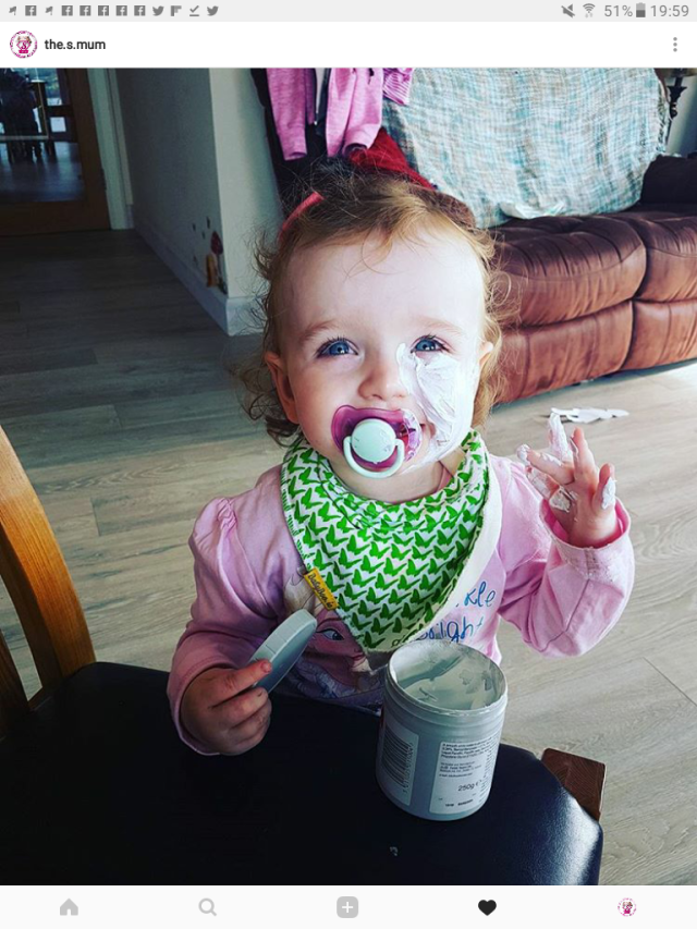 Right now, she is playing with sudocrem…but she’s no longer screeching at me, so we’ll roll with it.